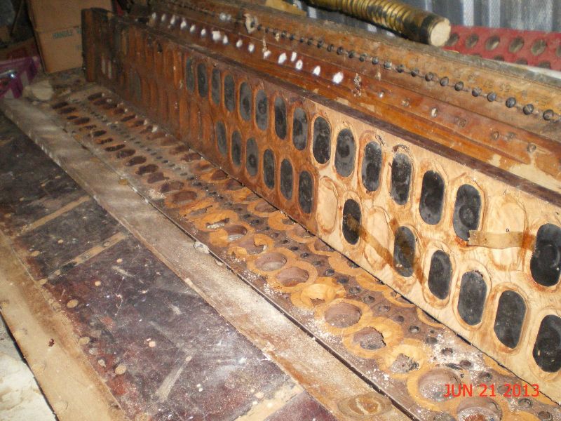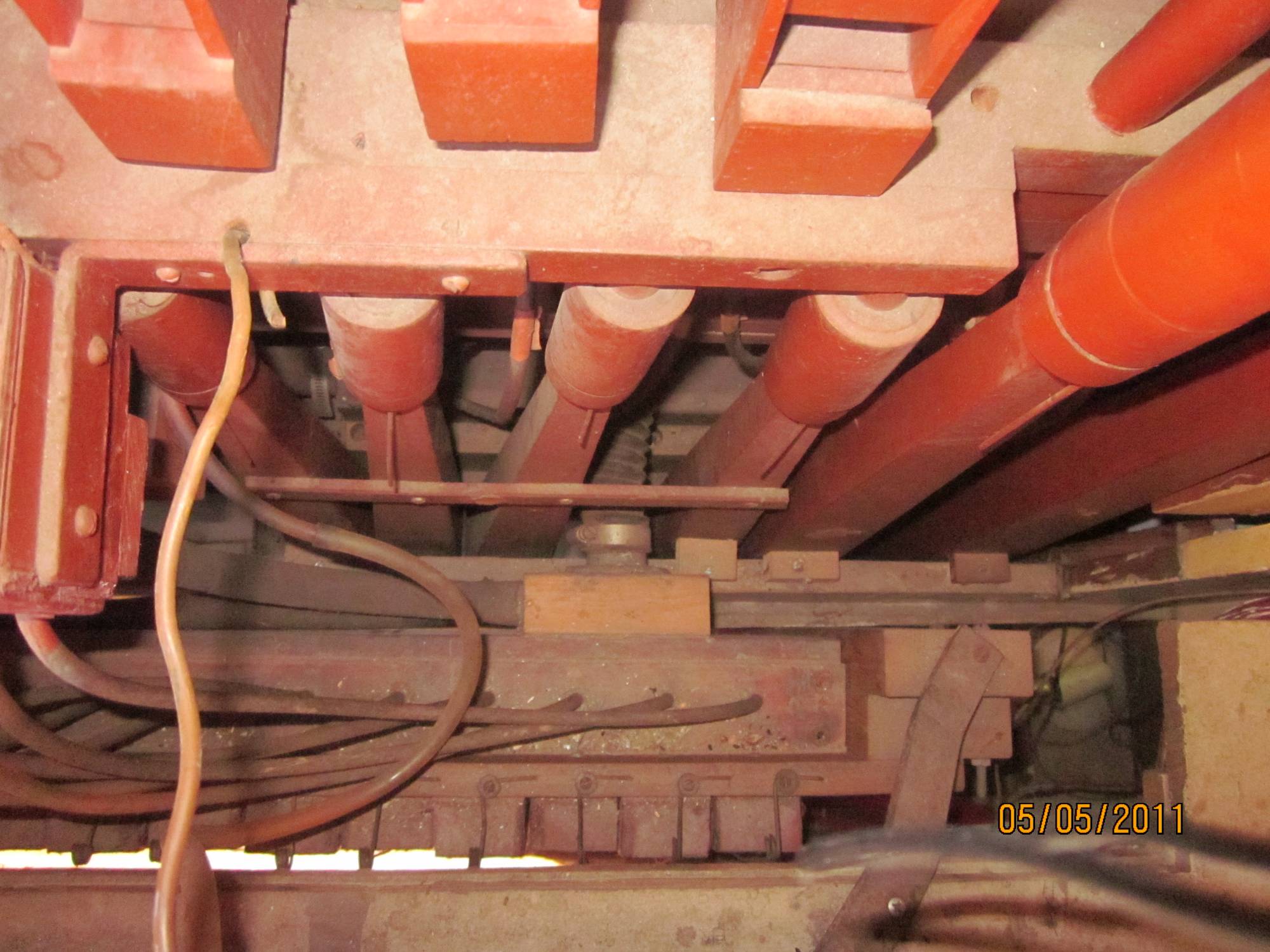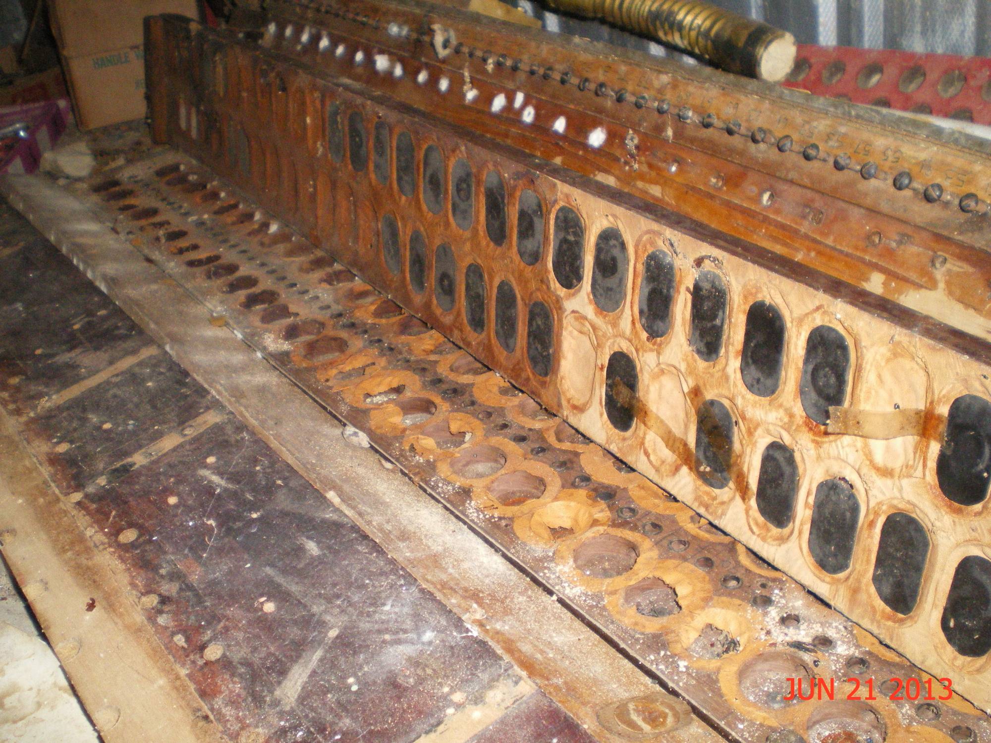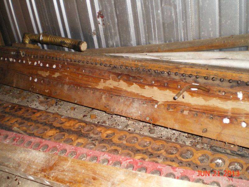 The organ has been sheltered for about 10 years and it was showing it's age. It would play via the Wurlitzer 165 roll system. The organ was visited in 2009, 2011, 2012, and 2013.